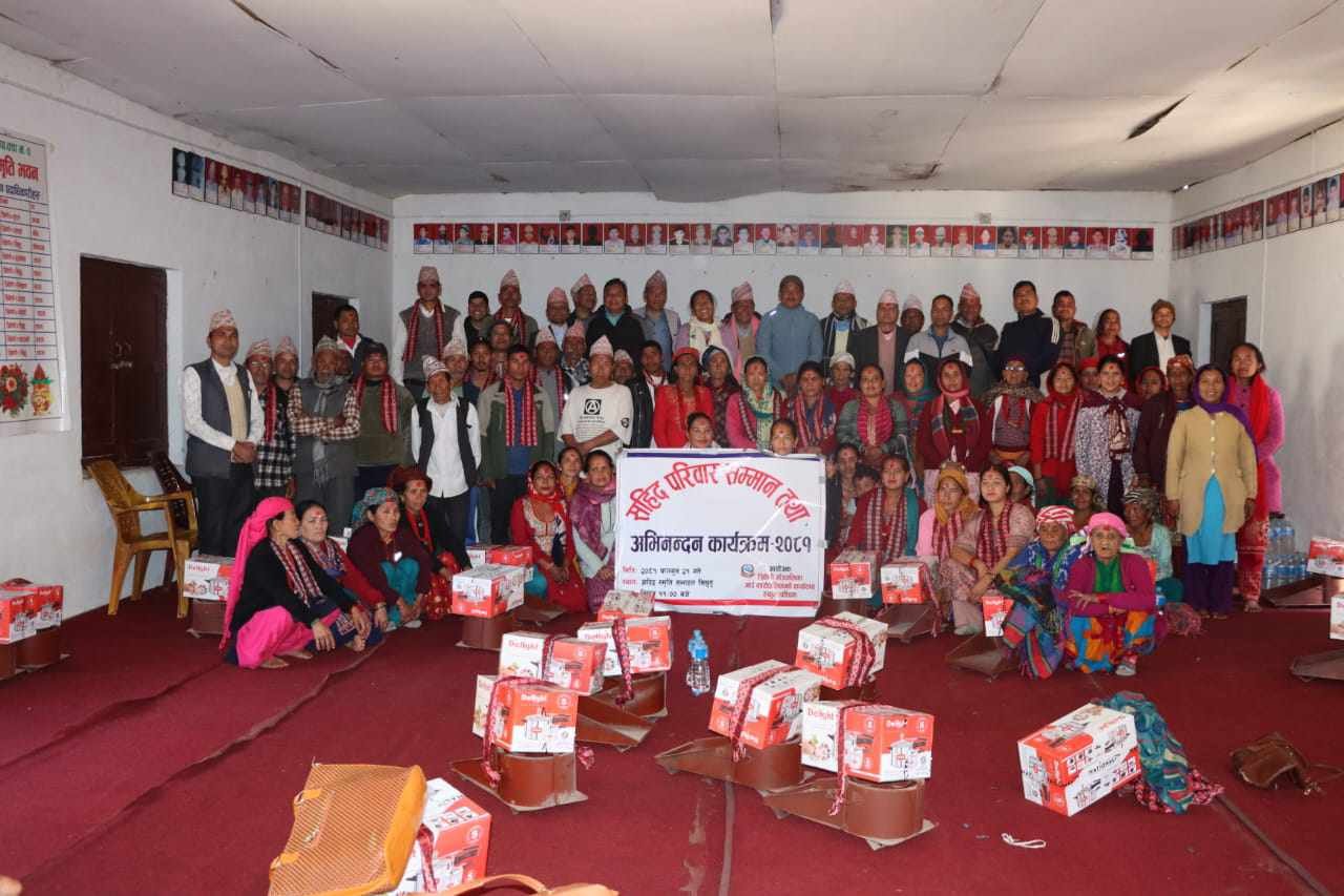 बुधबार वडा नम्बर २ को सिम्रुतुमा रहेको सहिद स्मृति प्रतिष्ठानको सभाहलमा एक कार्यक्रमको आयोजना गरी ७५ जना सहिद तथा बेपत्ता परिवारका सदस्यलाई सम्मान गरेको हो । पालिका भरका ७५ जना सहिद तथा बेपत्ता परिवारका सदस्यलाई सम्मान स्वरुप गाउँपालिकाले चुलो र ५ लिटरको प्रेसर कुकर प्रदान गरेको बताएको छ ।