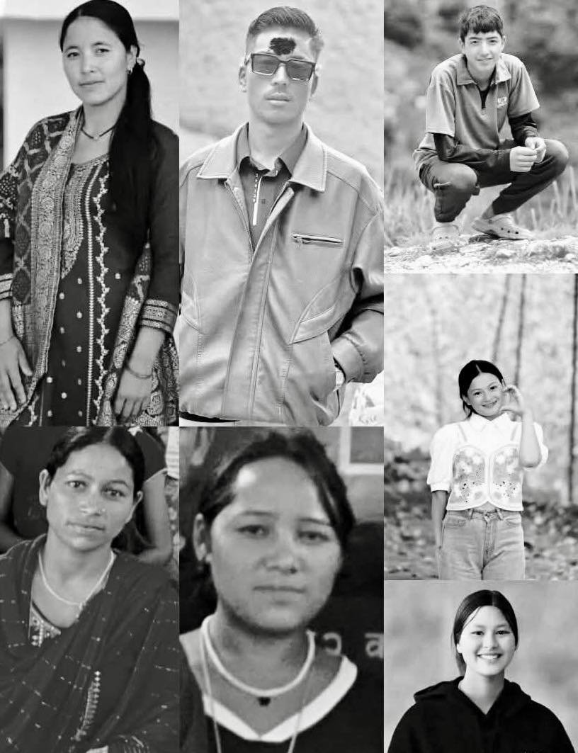 घाइतेहरुमा १७ बर्सिया सिर्जना बुढा, १५ बर्सिया सपना नेपाल, १८ बर्सिया जुना बुढा, १७ बर्सिया सङ्गीता बुढा, १९ बर्सिया शान्ति बुढा, १७ बर्सिया अञ्जना यरी, २० बर्सिया महिमा ओली, १७ बर्सिया मनिषा थापा, १५ बर्सिया सबिता बिक र ३४ वर्षीय चालक टोपजंग बुढा रहेको जिल्ला प्रहरी प्रमुख विष्टको भनाई छ ।